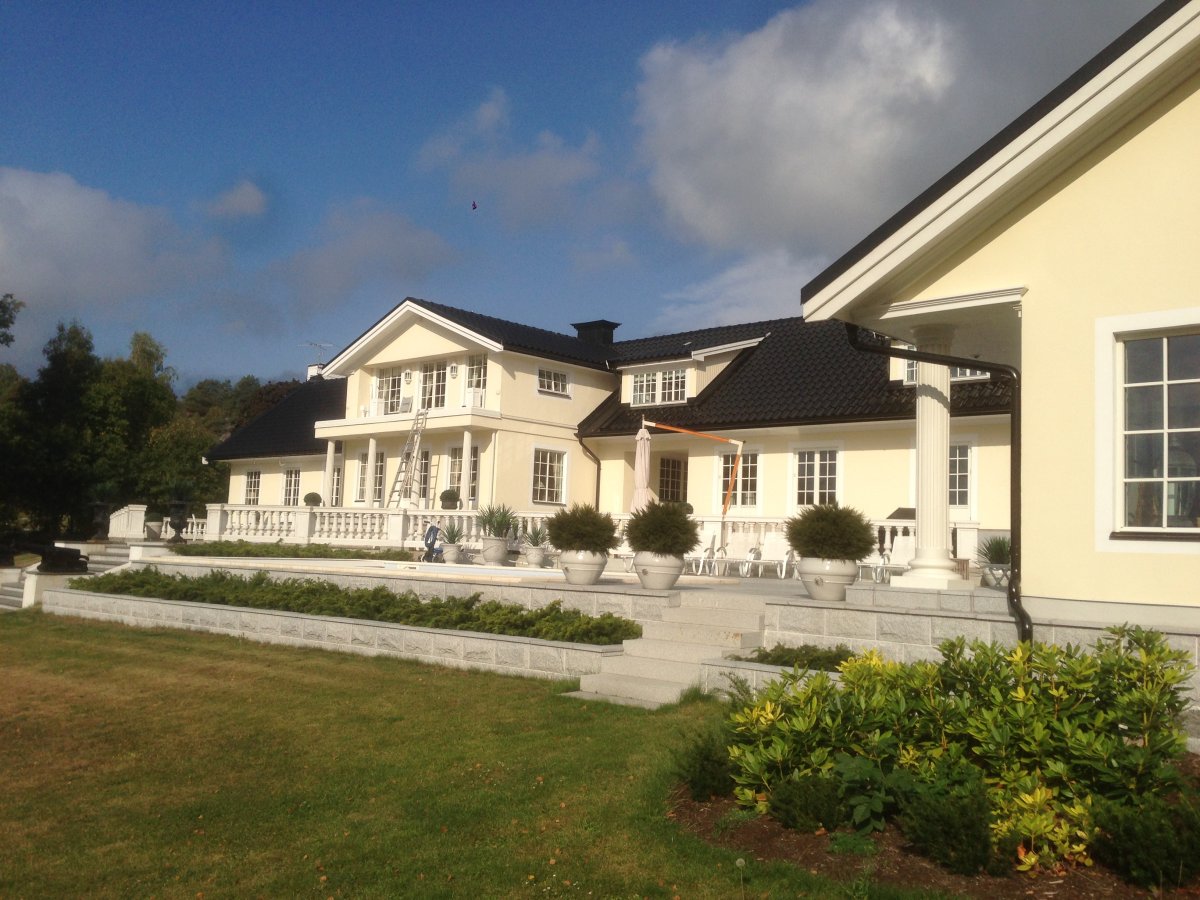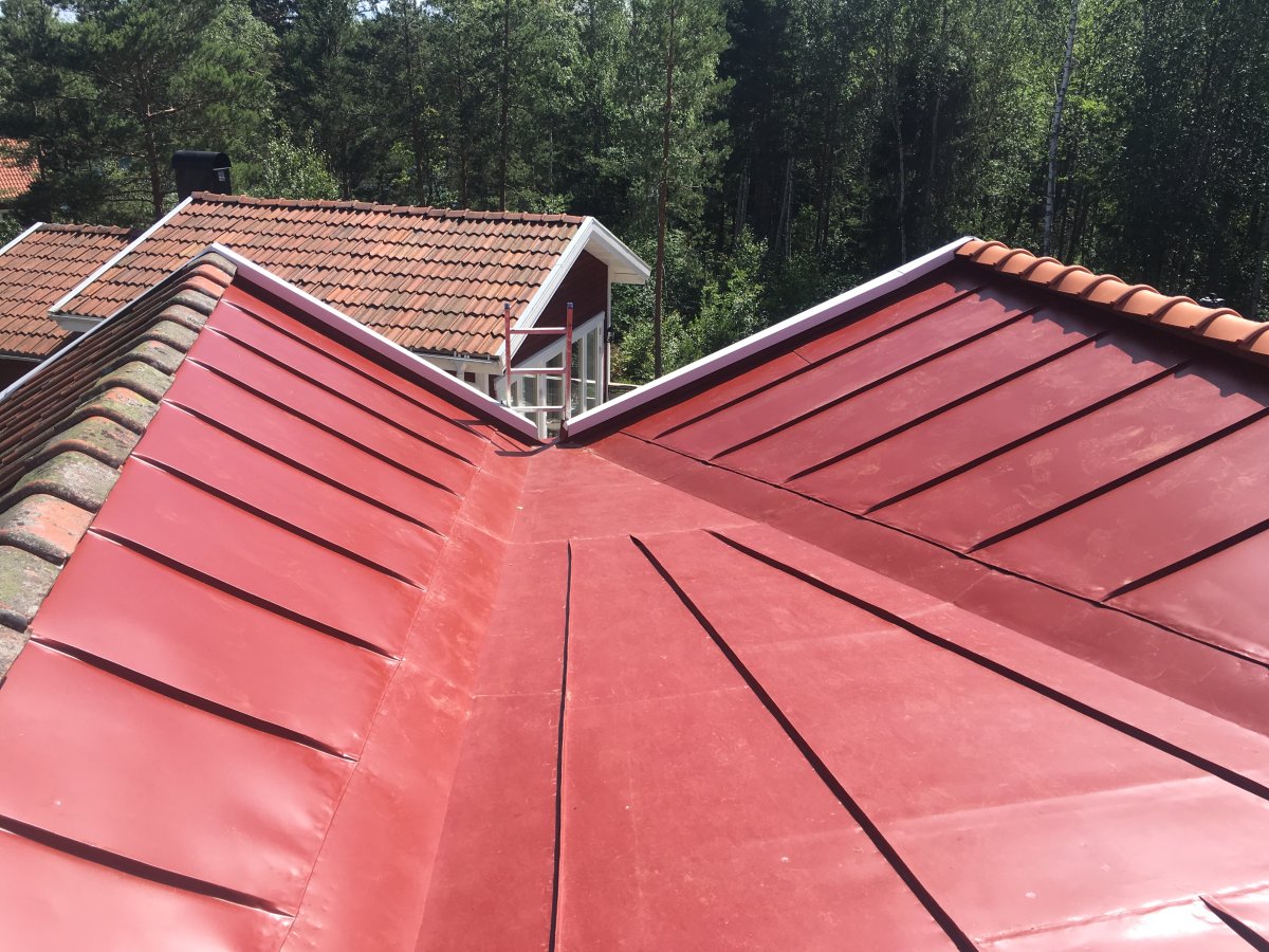 Entrétak, där falserna leder bort vattnet. Ljusterö