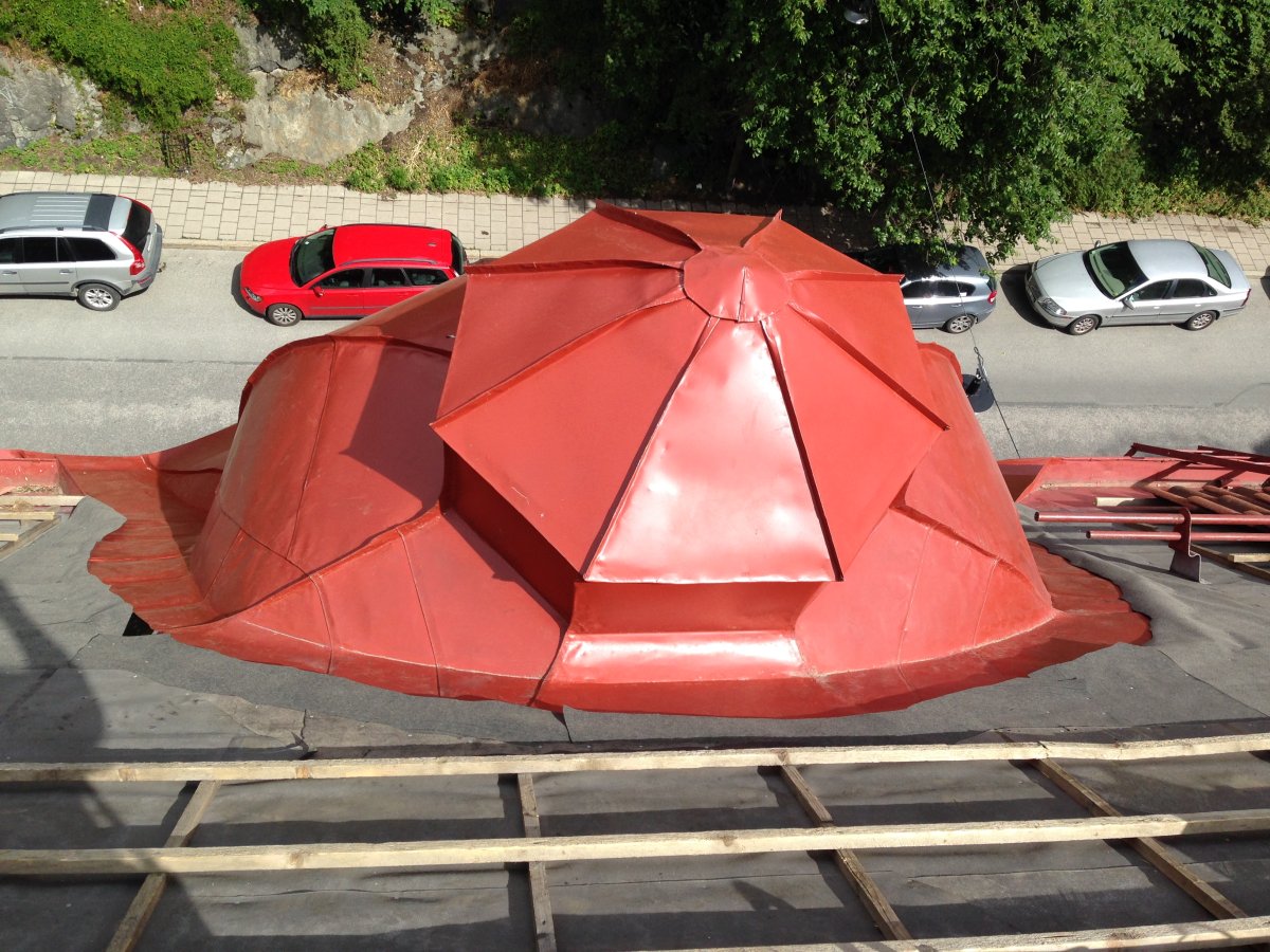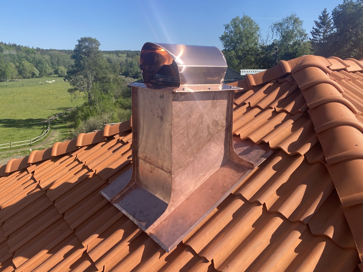 Ventilationsröret från den gamla jordkällaren var av koppar. Då behövdes en hatt i samma material.